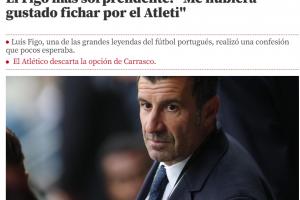 体育资讯08月27日讯 据《世界体育报》报道,葡萄牙名宿菲戈近日在参加活动时接受了采访,并坦白:除了职业生涯曾效力的巴萨、皇马之外,他还曾有加盟马竞的想法。