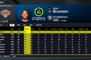 体育资讯8月30日讯 今日NBA 2K26正式发布,尼克斯队球员能力值如下: