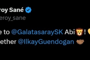 而他的曼城前队友萨内已经迫不及待地通过社媒“提前官宣”:“欢迎来到加拉塔萨雷,我们又重逢了@京多安!”