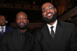 詹姆斯和韦德作为“救赎之队”成员一同入选。媒体GQ Sports晒出詹姆斯和韦德在名人堂现场的合影。