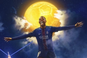 法甲官方晒出海报祝贺登贝莱,并配文:世界最佳球员效力于法甲,2025年金球奖!奥斯曼-登贝莱!