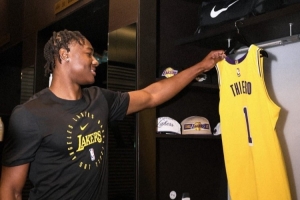 体育资讯9月30日讯 湖人媒体日,新秀阿杜-蒂耶罗出席接受采访。