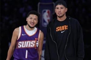体育资讯10月15日讯 今天太阳球星更新INS晒出了中国赛期间自己与其模仿者“中文布克(@cy布克)”的合影,配上表情:“🇨🇳📚”。