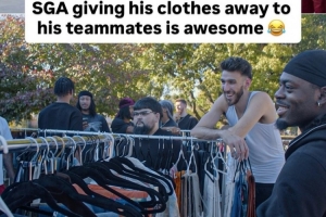 亚历山大说,因为自己衣服鞋子太多,但衣帽间空间有限,所以需要定期清空一些服饰。他会邀请队友来挑选,半卖半送,给队友们捡漏。