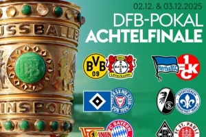 体育资讯11月3日讯 德国杯1/8决赛对阵已经出炉,多特将对阵勒沃库森,拜仁交手柏林联合,比赛将于当地时间12月2日、3日进行。