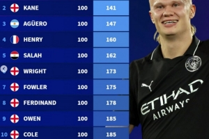 下一篇: 英超最快达成百球纪录榜:希勒124场居首,哈兰德目前107场98球
