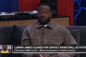 体育资讯11月7日讯 今日,前NBA球员沃尔在NBA TV电视节目中谈到了湖人前锋詹姆斯恢复对抗性篮球训练的复出前景。