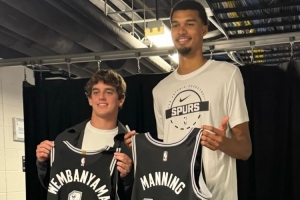 下一篇: 德克萨斯大学橄榄球队成员观战马刺 星三代曼宁与文班合影换球衣